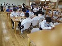 お昼休みには小雨が降っていましたが,外で元気に活動する生徒が多くいました。また,図書室を利用する生徒も増えてきました。