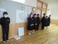 本日から3日間,学習訓練週間を行っています。学習委員が登校してくる生徒に,3分前入室・2分前着席や休み時間の内に授業の準備をすることなどを呼びかけました。