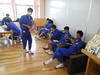 1年生が部活動の体験を行っています。初めて行う競技があり,上級生が丁寧に教えている姿が見られます。