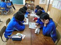 本日は修学旅行の2日目の予定をグループごとに検討しました。2日目は7~8人のグループで,ジャンボタクシーを利用し,京都市内研修を行う予定です。楽しみにしているようすが感じられます。