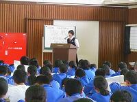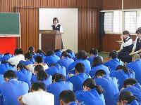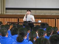 1年生が集会を開き,連休中の過ごし方や中学校生活での約束事などの確認を行いました。