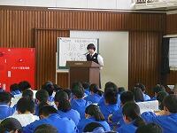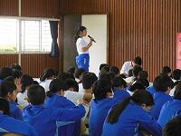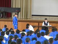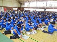 1年生が学年集会で,5月19日,20日に行う宿泊学習について説明を行いました。また,各場面に応じた並び方等を確認しました。