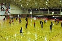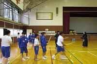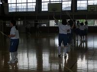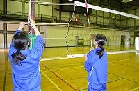 大平体育館は女子バレー部が練習試合の準備をしていました