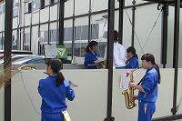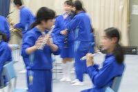 校舎内では、吹奏楽部が練習していました。先輩が後輩に優しく指導している姿が見られました。