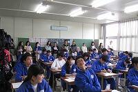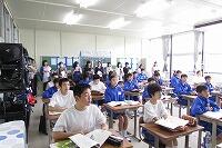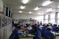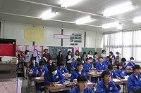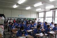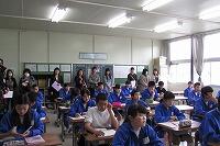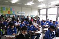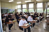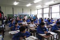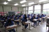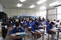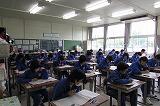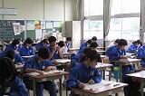麻生先生の実物投影機を使った双方向的な社会の授業、湯田先生の生徒に黒板に答えを書かせる活動的な授業など、各先生方の工夫と生徒の熱心な姿勢がうかがえます。気温もちょうどよくとてもいい環境です。