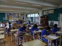 今日は全校登校日で、実力テストを行いました。その後、新給食センターの給食の試食を行いました。ご飯にもちもち感がありおいしかったです。