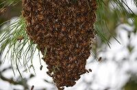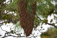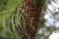 大平中の職員玄関前の松に蜂のかたまりが・・・