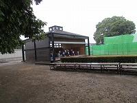 学校では弓道部と吹奏楽部が活動していました。今日は雨でしたが、弓道場では、おやじの会皆様の協力により設置されたひさしで雨が遮られ助かっています。