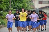 その周りで、ハンドボール部と陸上競技部が練習をしています。