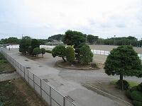 校庭では野球部、ハンドボール部、サッカー部、ソフトテニス部が練習をしています。