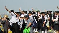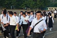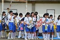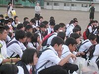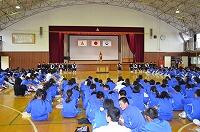 まぶしい太陽の下、大平中生の元気いっぱいのかけ声が