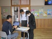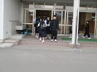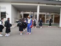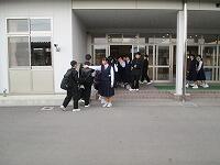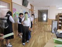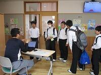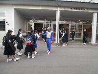 2年生が職場体験学習の各事業所との打合せに行きました。昇降口で確認を行い,グループごとに体験先に向け出発しました。