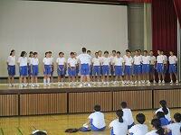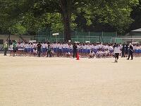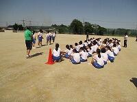 運動会の練習を行いました。最後に各色(1組:緑,2組:ピンク,3組:黄色,4組:青)ごとに3年生の実行委員を中心に結団式を行い,士気を高めました。