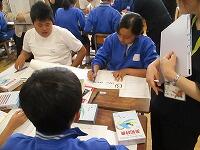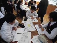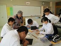地域のボランティアの方々を招き,家庭科でチャコペンで縫いしろを記入する学習を行いました。多くのボランティアの方々に来ていただいたおかげで,一人ひとりの生徒に細かな点まで確認することができました。