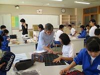昨日に引き続き,地域のボランティアの方々に来校していただき,家庭科の授業でチャコペンによる縫いしろ記入についてご指導いただきました。一人ひとりに細かな点まで見ていただくことができました。