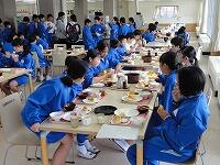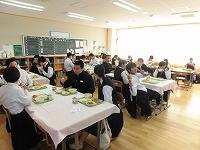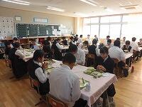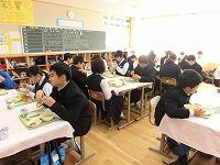 3年生の給食のようすです。どのクラスも和やかに食事をしています。運動部の生徒は,明日から最後の地区大会を迎えます。