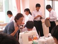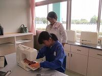 地域のボランティアの方々に来ていただき,ミシンがけについてご指導いただきました。一人ひとりに丁寧にご指導いただき,技能が高まりました。