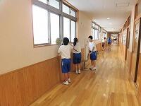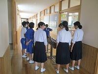 今週は清掃強調週間を実施しています。清掃の時間を5分延長し,毎日重点箇所を決めて取り組んでいます。また,登校時には美化委員があいさつ運動を行い,意識の高揚を図っています。
