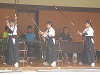 弓道の授業の研究会を行いました。授業で弓道を行っている学校の先生方が県外からも集まり,研修を行いました。