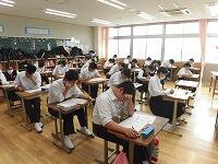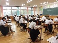 本日と明日の2日間で中間テストを実施します。1,2年生のテストのようすです。真剣に問題に向き合っています。
