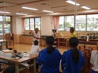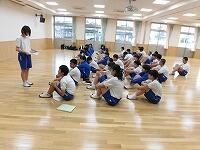 3年生女子の保健体育の授業です。本校では武道の単元で女子は弓道を選択し,どの学年も弓道を行っています。