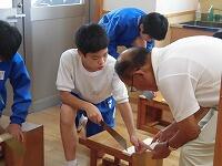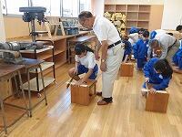 地域のボランティアの方が来校し,のこぎりの使い方についてご指導いただきました。丁寧に教えていただき,作業が進みました。