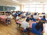 1,2年生の給食のようすです。各クラスとも和やかに食事をしています。
