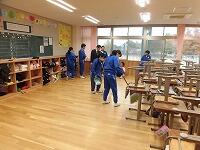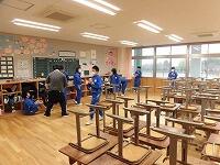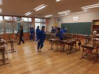 清掃のようすです。無言清掃を実施し,静かに清掃を行っています。また終了5分前からは自分の分担以外のところで必要なところをきれいにしています。