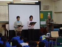 総合的な学習の時間に、1年生対象に朗読の会が開かれました。