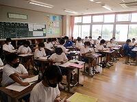 1年生のローテーション道徳のようすです。いつもとは違った先生の道徳の授業で,深く考えている生徒が多く見られました。