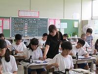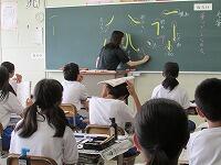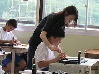 書写の授業に地域ボランティアの野原さん、瀧沢さんに指導していただきました。