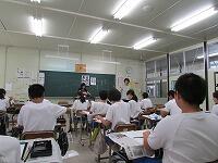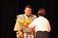 最後には、代表生徒が参加して狂言の発声練習を教えてもらいました。