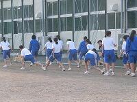今日の部活動の様子です。明日は県大会なので、風が強い中練習をしています。今までの努力を無駄にしないよう頑張ってほしいです。