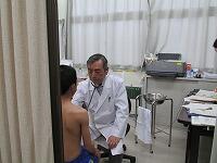 「体の発育発達の様子や健康状態を調べ、病気や異常を早期に発見し、早期治療につなげる」ことをねらいに内科検診が行われました。今日は、1年生と2年生2クラスを学校医の小森谷先生に検診していただきました。
