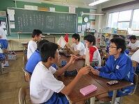 1年3組で、美術の研究授業がありました。今日の授業は「言葉から受ける色の印象や色から受ける感情について考える」ことをねらいに行われました。生徒たちは、グループで活発に話し合いをしていました。