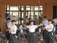 学校では弓道部と吹奏楽部が活動していました。今日は雨でしたが、弓道場では、おやじの会皆様の協力により設置されたひさしで雨が遮られ助かっています。