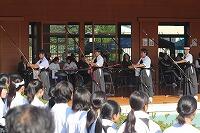 保健体育の授業は、2年1・2組男子の剣道の基本動作・基本技を学ぶものでした。生徒は大きな声をだし、元気に活動していました。