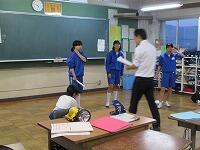 5,6校時にけやき祭の準備がありました。お囃子の係には、地域ボランティアの野原さんが指導してくださっていました。生徒はよく活動していました。