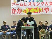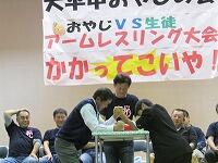 中庭イベント、校庭イベント、おやじの会アームレスリング、昼食の様子です。