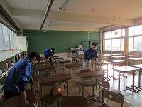 昨日後、けやき祭の片付けの時間が足りなかったため、完全には終わりませんでした。今朝 野球部の皆さんが、教科展会場の復元をやってくれました。