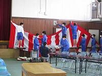 本日は県立高校一般選抜学力検査です。多くの3年生が受検しました。また,在校生が卒業式の準備を行いました。2年生が体育館の会場準備,1年生が校舎内外の清掃・整備を行いました。