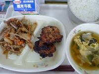 ご飯、牛乳、鶏肉のねぎ味噌焼き、五目きんぴら、かんぴょうの卵とじ です。