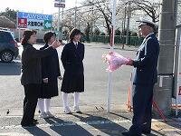 3月21日(木)の朝、今年1年間の感謝を込めて、校長先生、生徒会長、交通委員が代表としてあいさつに行きました。