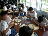 昨日に引き続き、関塚トヨ様に、下野書道展の作品づくりを指導していただきました。生徒は、昨日よりもだいぶ上手になり、作品を1つ完成しました。
