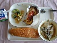 給食の八宝菜も、名前のようにとてもおいしかったですよ。写真は2年1組の給食の様子です。
