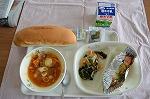 9月26日(木)の給食は、鮭のホイル焼き、ミネストローネ、コッペパン、イチゴジャム、チーズ、牛乳、海藻サラダでした。生徒の皆さんは、とてもおいしそうにいただいていました。