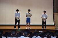 校長先生から式辞をいただき、学年代表生徒による「1学期を振り返って」の作文発表がありました。