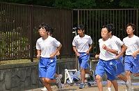校庭はとてもまぶしく、暑い日です。陸上競技部とハンドボール部が練習に頑張っていました。校舎内ではバドミントン部が応援の練習をしていました。吹奏楽部も7月31日の県吹奏楽コンクールに向けて頑張っています。