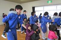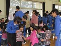 子どもたちの大きな声に圧倒されながらも、ゲームが始まればみんな仲良く触れ合い楽しく遊んでいました。生徒たちは、子どもたちから甘えられて嬉しそうでした。