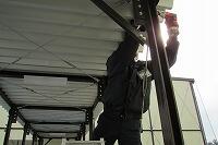 校舎の解体工事は休みでした。体育館西側の自転車置場が、撤去されていました。